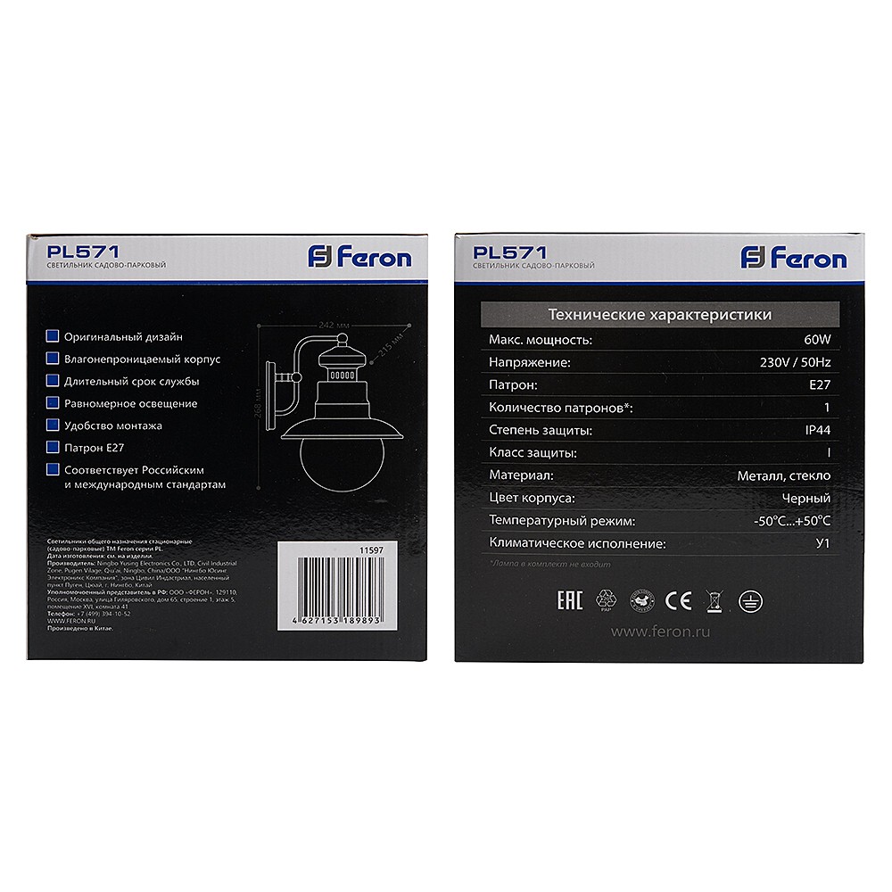 Уличный настенный светильник Feron Барселона 11597