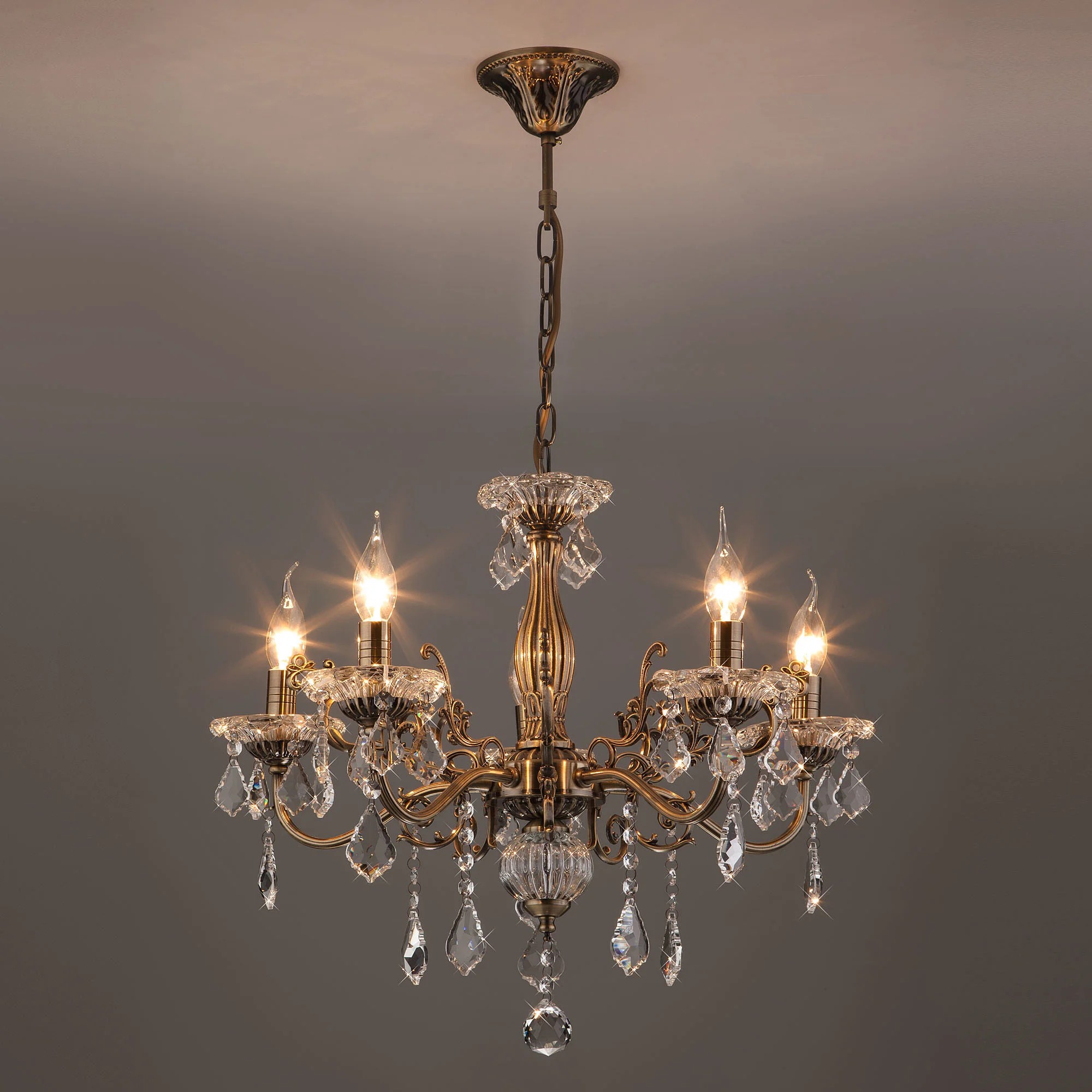 Подвесная люстра Eurosvet Elisha 3281/5 античная бронза/прозрачный хрусталь Strotskis