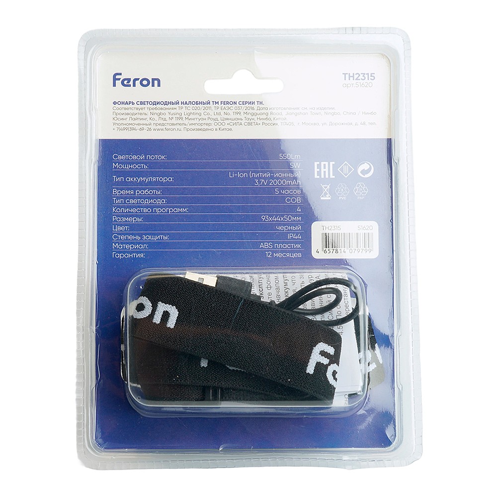 Фонарь с аккумулятором, фонарь головной Feron TH2315 51620