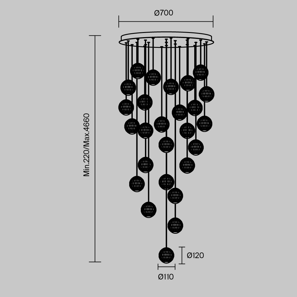 Люстра каскадная Maytoni Sapphire MOD293PL-L140BS3K