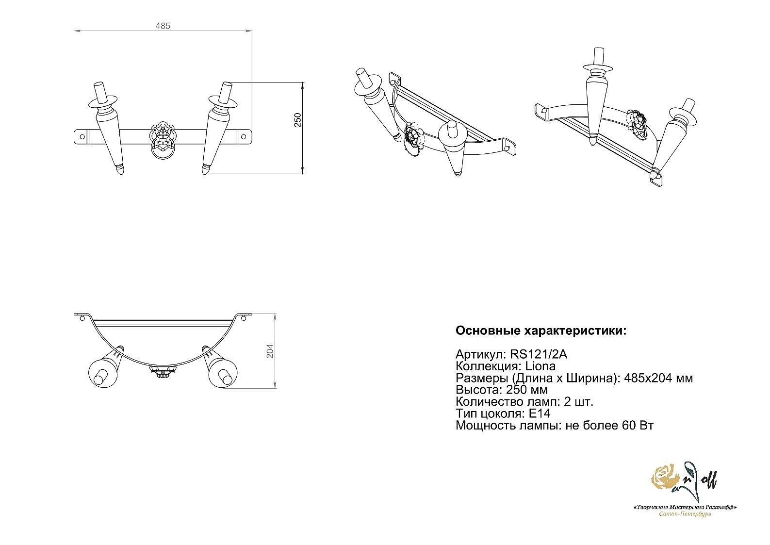 Настенное бра Розанофф Liona RS121/2A