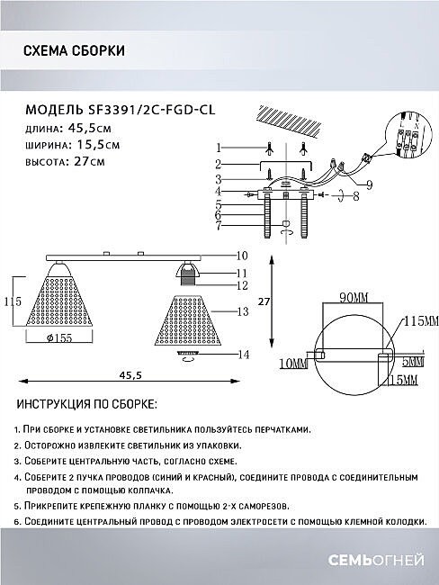 Потолочная люстра Seven Fires Fabius SF3391/2C-FGD-CL