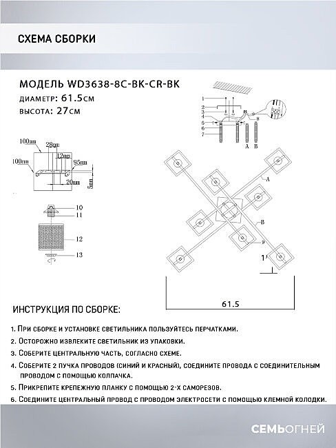 Потолочная люстра Wedo Light Sildzh WD3638/8C-BK-CR-BK