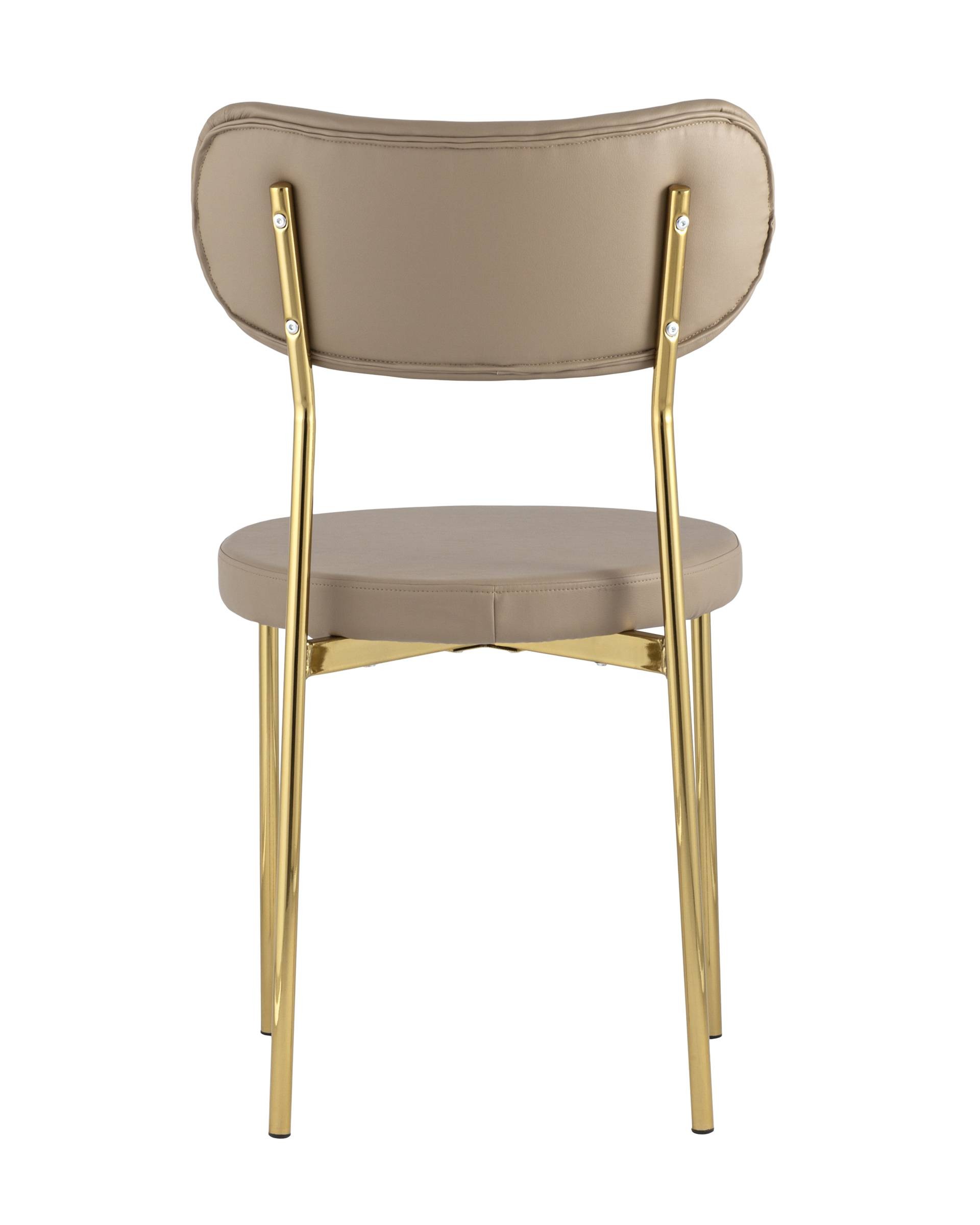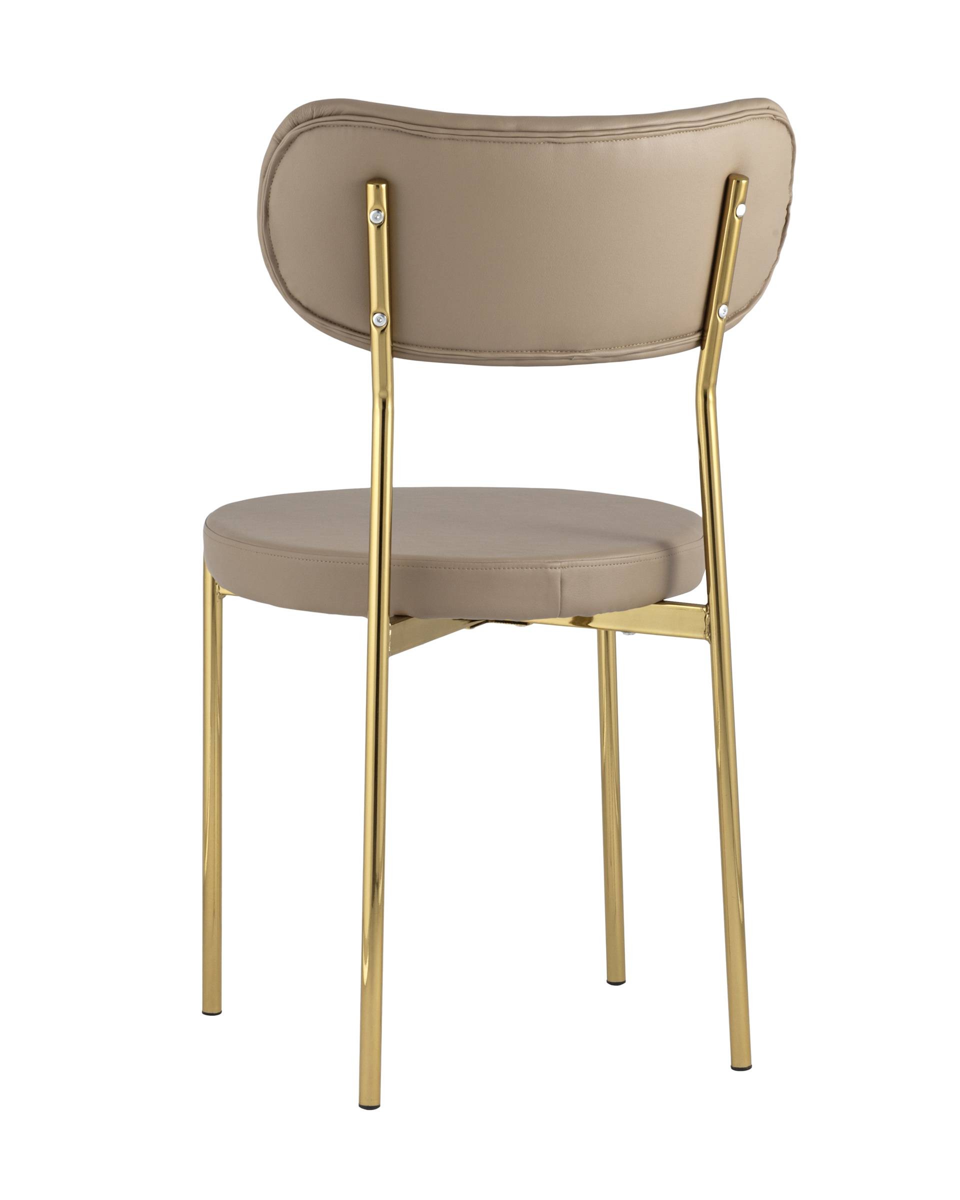 Обивка выполнена из прочной износостойкой экокожи, ножки изготовлены из металлас с покрытием в золотом оттенке. На ножках дополнительно предусмотрены специальные подпятники, которые предотвращают скольжение и повреждение напольного покрытия.
