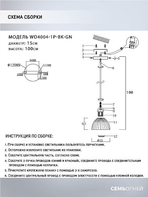 Светильник подвесной Wedo Light Dzhenis WD4004/1P-BK-GN